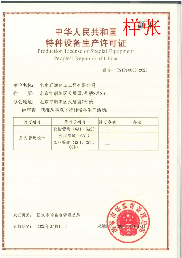 特種設(shè)備設(shè)計許可證(壓力管道)