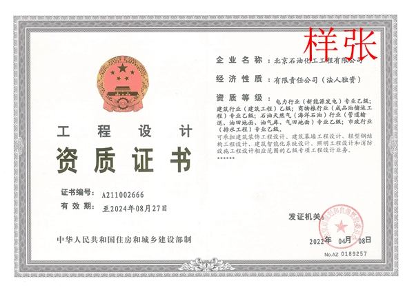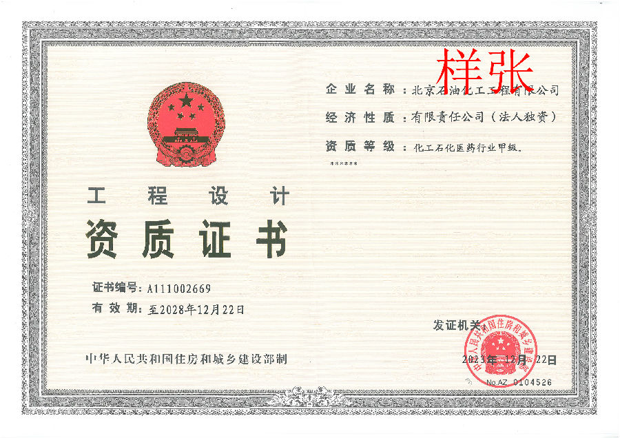工程設(shè)計資質(zhì)證書(化工石化醫(yī)藥行業(yè)甲級)
