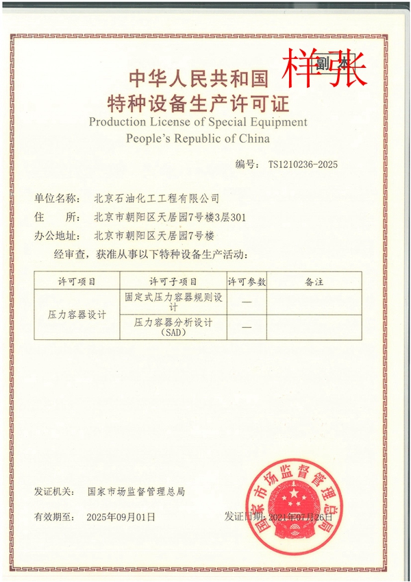 特種設(shè)備設(shè)計許可證(壓力容器)