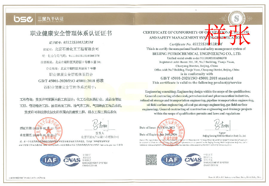 電力行業(yè)(新能源發(fā)電)專業(yè)乙級;建筑行業(yè)(建筑工程)乙級;商務(wù)糧行業(yè)(成品油儲運工程)專業(yè)乙級;石油天然氣(海洋石油)行業(yè)(管道輸送、油田地面、油氣庫)專業(yè)乙級;市政行業(yè)(排水工程)專業(yè)乙級。